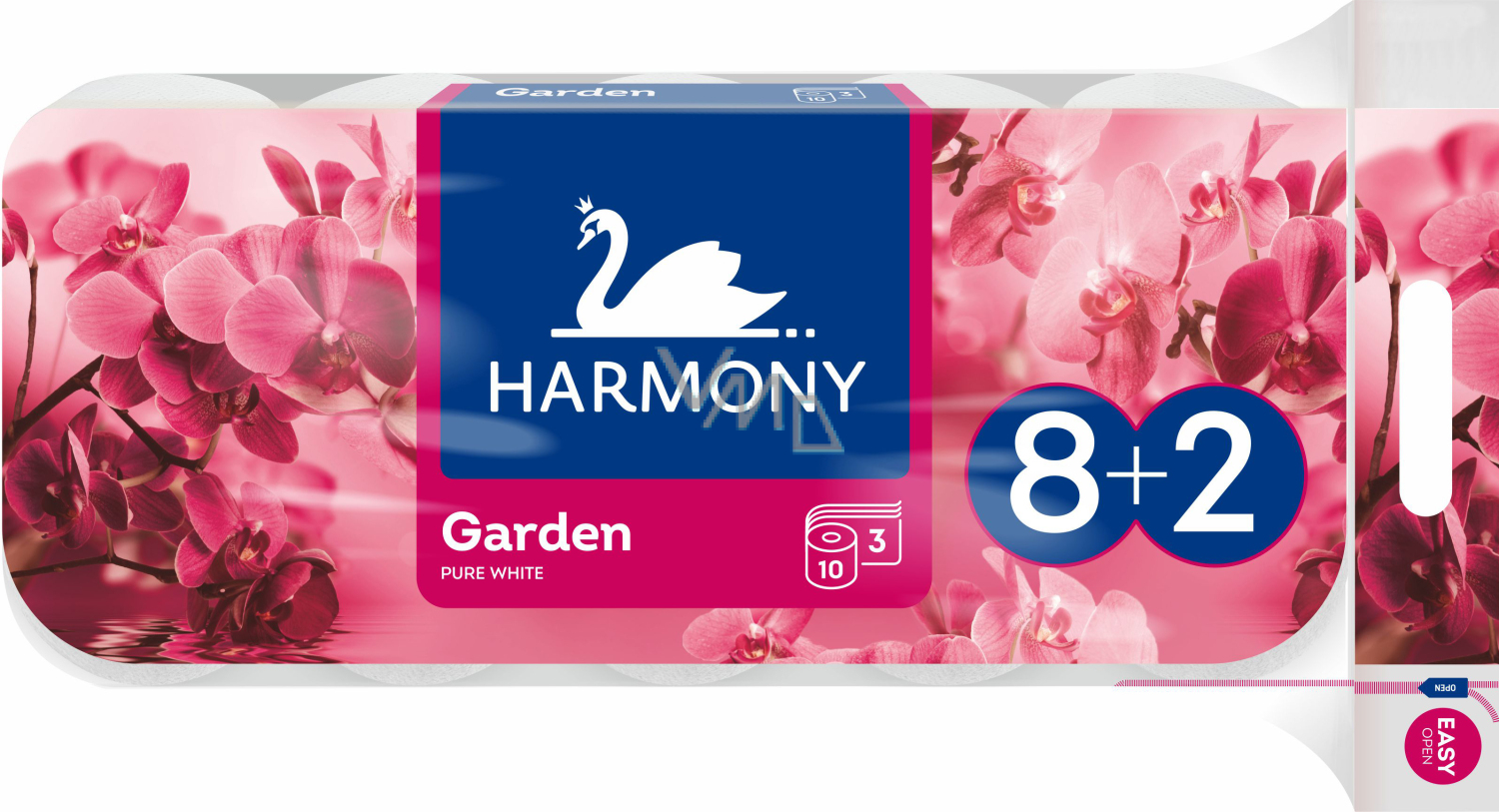Rezension Harmony Premium Garden Pure White 3-lagiges Toilettenpapier, 8+2 Rollen, Rolle 17,5 m