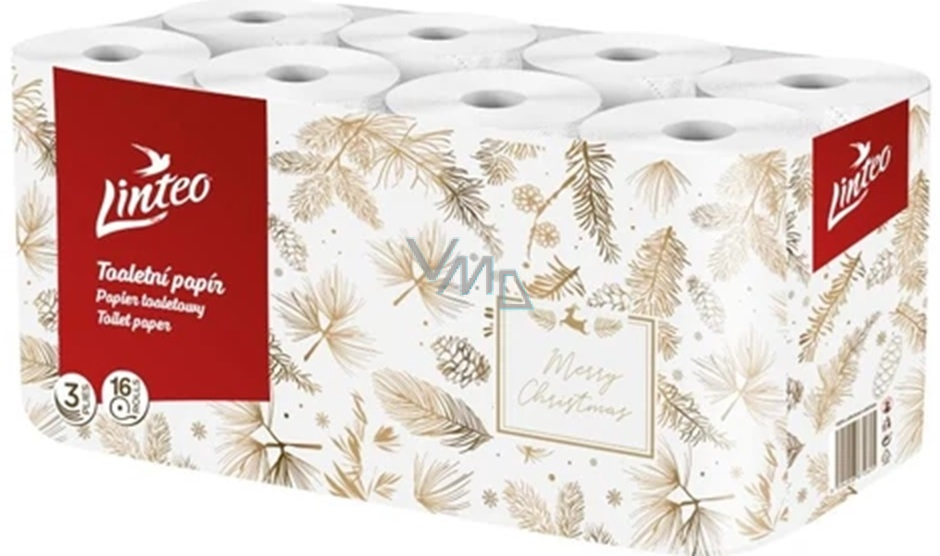 Jemný třívrstvý toaletní papír Linteo s vánočním motivem balený po 16 rolích. Je vyroben ze 100% celulózy a díky třem vrstvám nabízí maximální pevnost a jemnost.