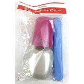 Plastic Nova Toiletry Bag Set - Reise-Toiletten-Set Rosa, Becher, Zahnbürste und Seifenkoffer 3 Stück
