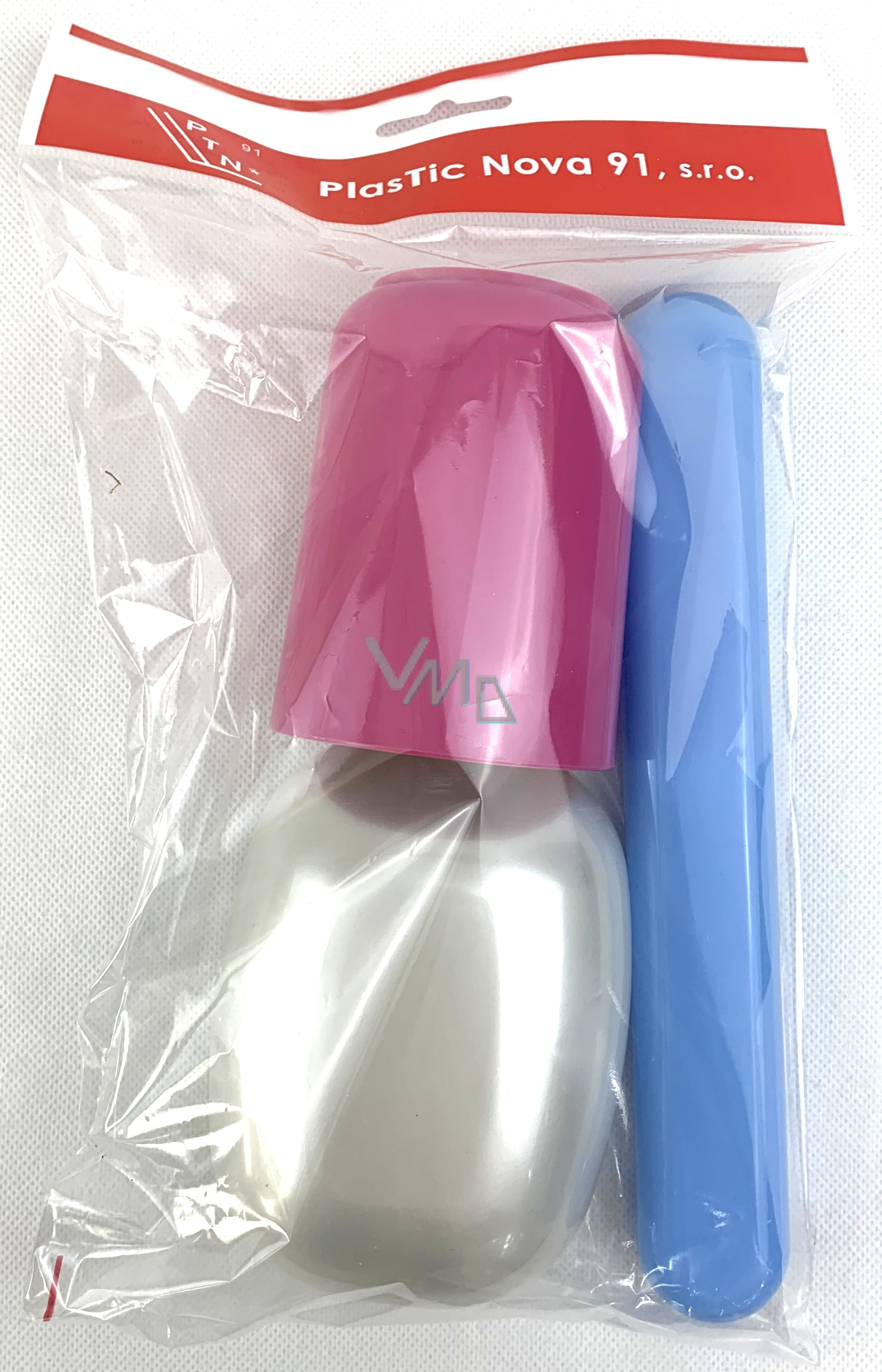 Plastic Nova Toiletry Bag Set - Reise-Toiletten-Set Rosa, Becher, Zahnbürste und Seifenkoffer 3 Stück
