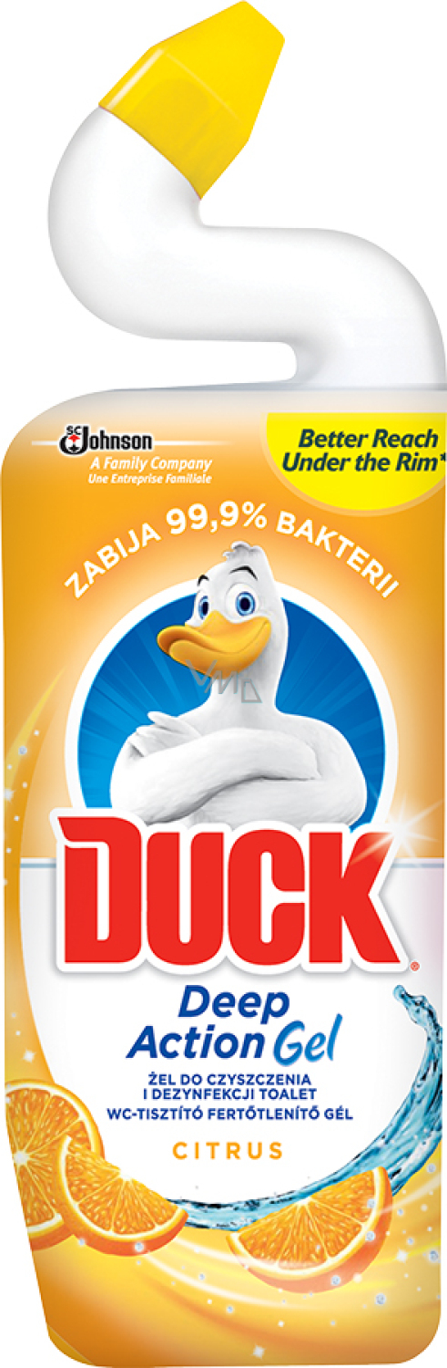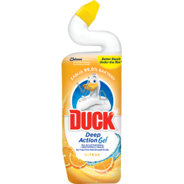 Duck Flüssigreiniger für die Toilette mit angenehmem Zitrusduft, das Produkt reinigt die Toilette, entfernt Kalkablagerungen und Schmutz. Der praktische gewölbte Flaschenhals erreicht gut unter den Rand der Toilettenschüssel, wo sich die Ablagerungen am häufigsten befinden. Es hinterlässt einen langanhaltenden Zitrusduft.