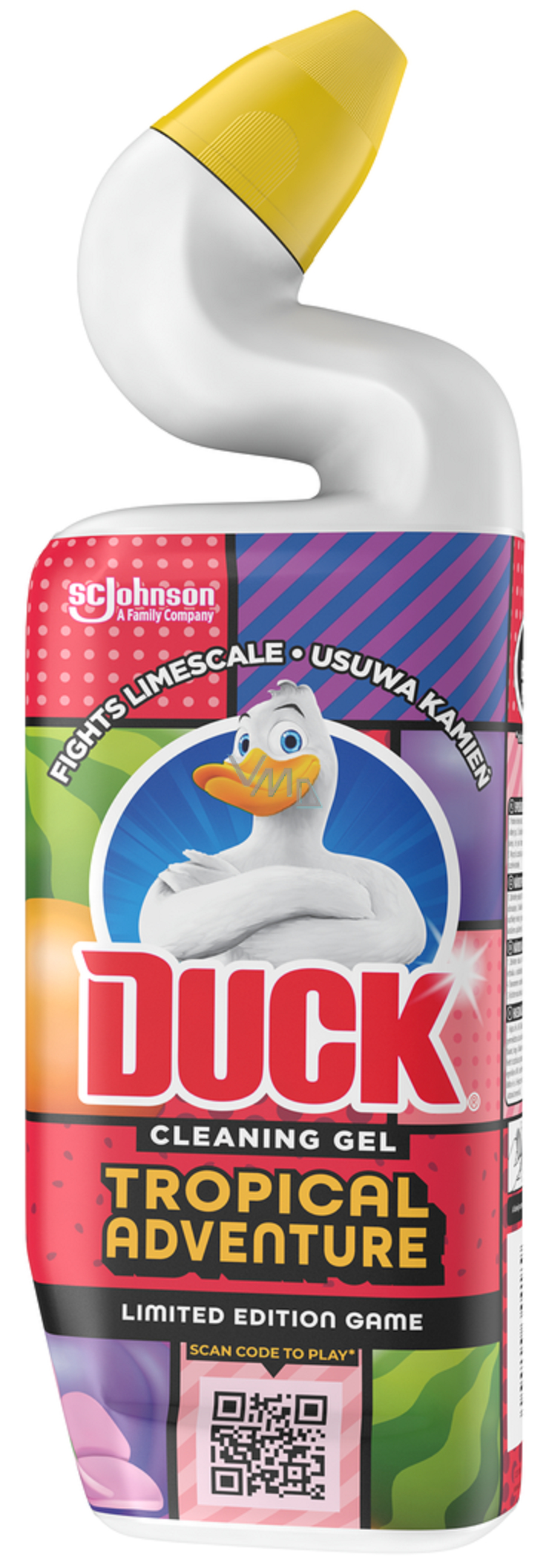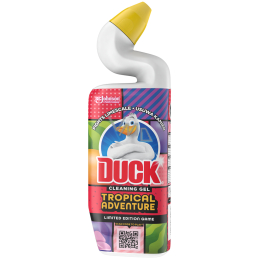 Duck WC tekutý čistič Tropical Adventure dodá vaší toaletě dokonalou svěžest. Umožňuje lepší dosah pod obrubou WC mísy díky unikátnímu hrdlu výrobku. Čistí, dezinfikuje a zanechává příjemnou tropickou vůni plné svěžích květin s nádechem Kokosu. Zároveň tělo lahve je vyrobené z 50% recyklovaného plastu od konečného spotřebitele, s výjimkou víčka.