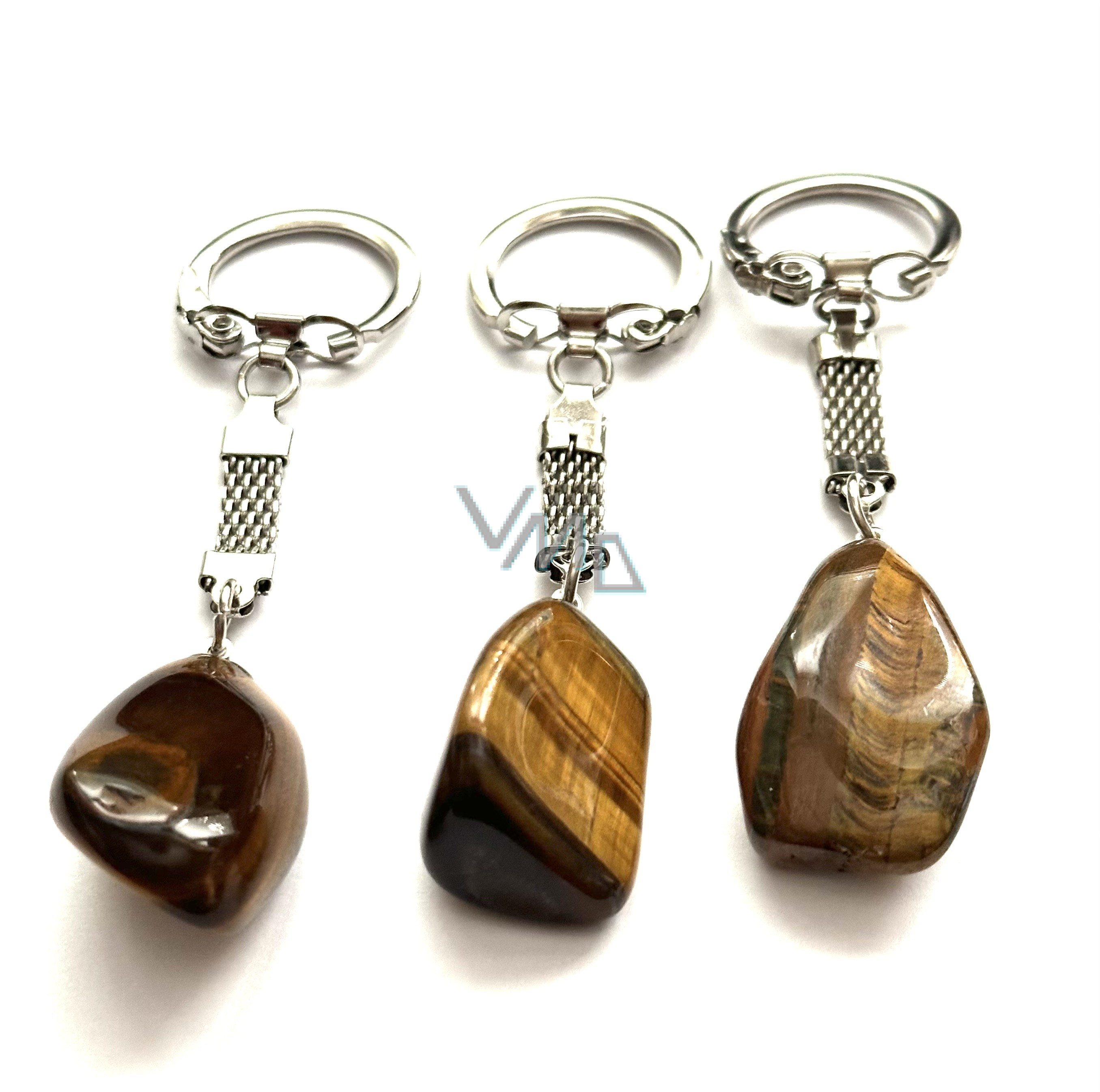 Tigereye Trommel Anhänger Schlüsselanhänger Naturstein, ca. 10 cm, Stein der Sonne und Erde, bringt Glück und Wohlstand