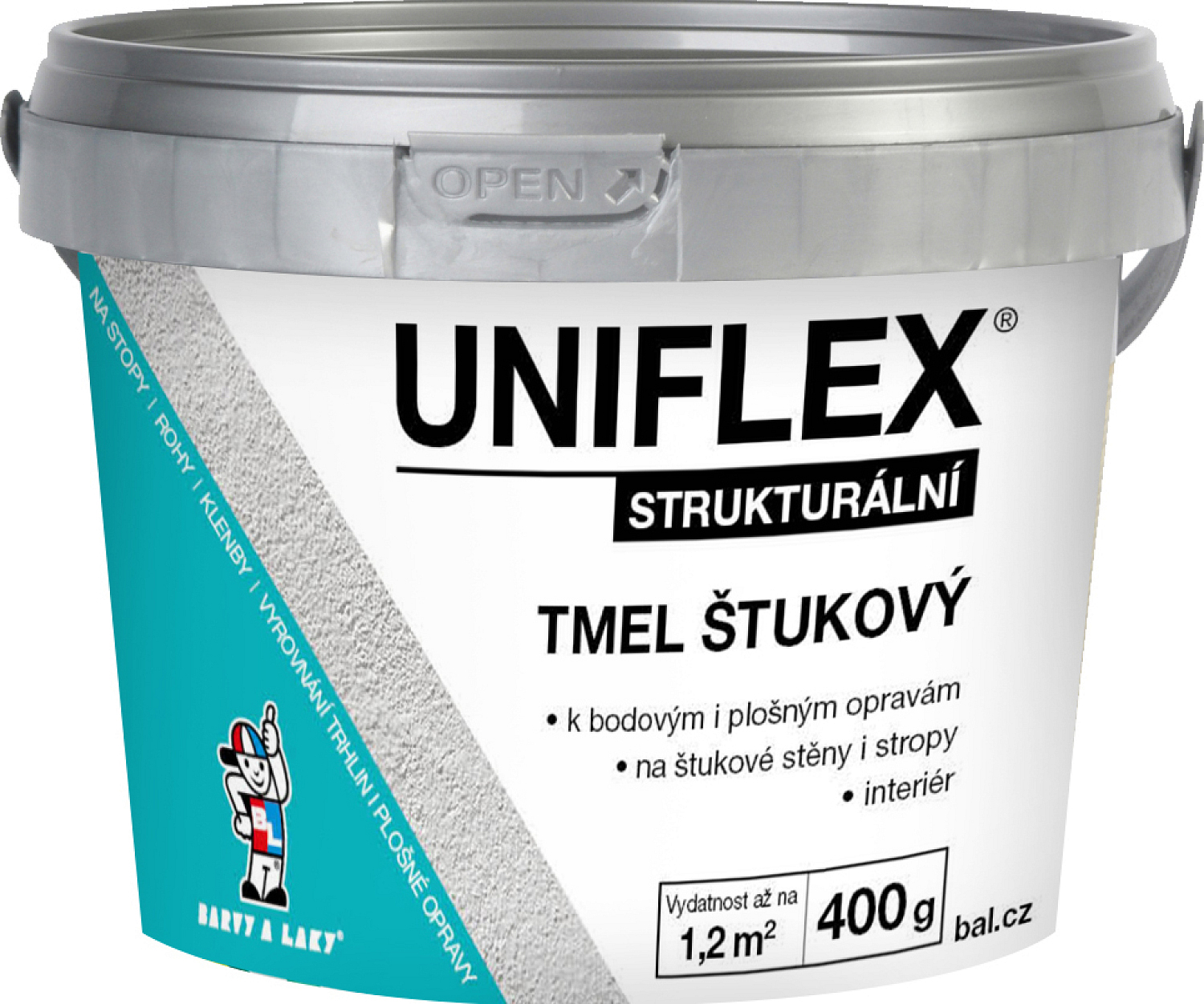 Uniflex Acryl-Stuckspachtel bestimmt zur Füllung mittlerer und größerer Unebenheiten, hervorragende Haftung auf den meisten Oberflächen, insbesondere auf Metall, Stahl, Stein, Beton, Holz usw., überstreichbar, für Innen- und Außeneinsatz.