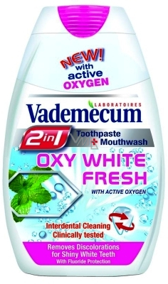 Toužíte po dokonalém úsměvu? K tomu jsou potřeba zářivě bílé zuby a svěží dech. Odborníci z laboratoří Vademecum společnosti Henkel stále zdokonalují výrobky ústní hygieny, které vám cestu k sebevědomému úsměvu usnadní. Nyní představují dvě novinky. Jde o zubní pasty a ústní vody v jednom. Inovativní složení Vademecum 2v1 Oxy White Fresh s aktivním kyslíkem odstraňuje stopy zabarvení.