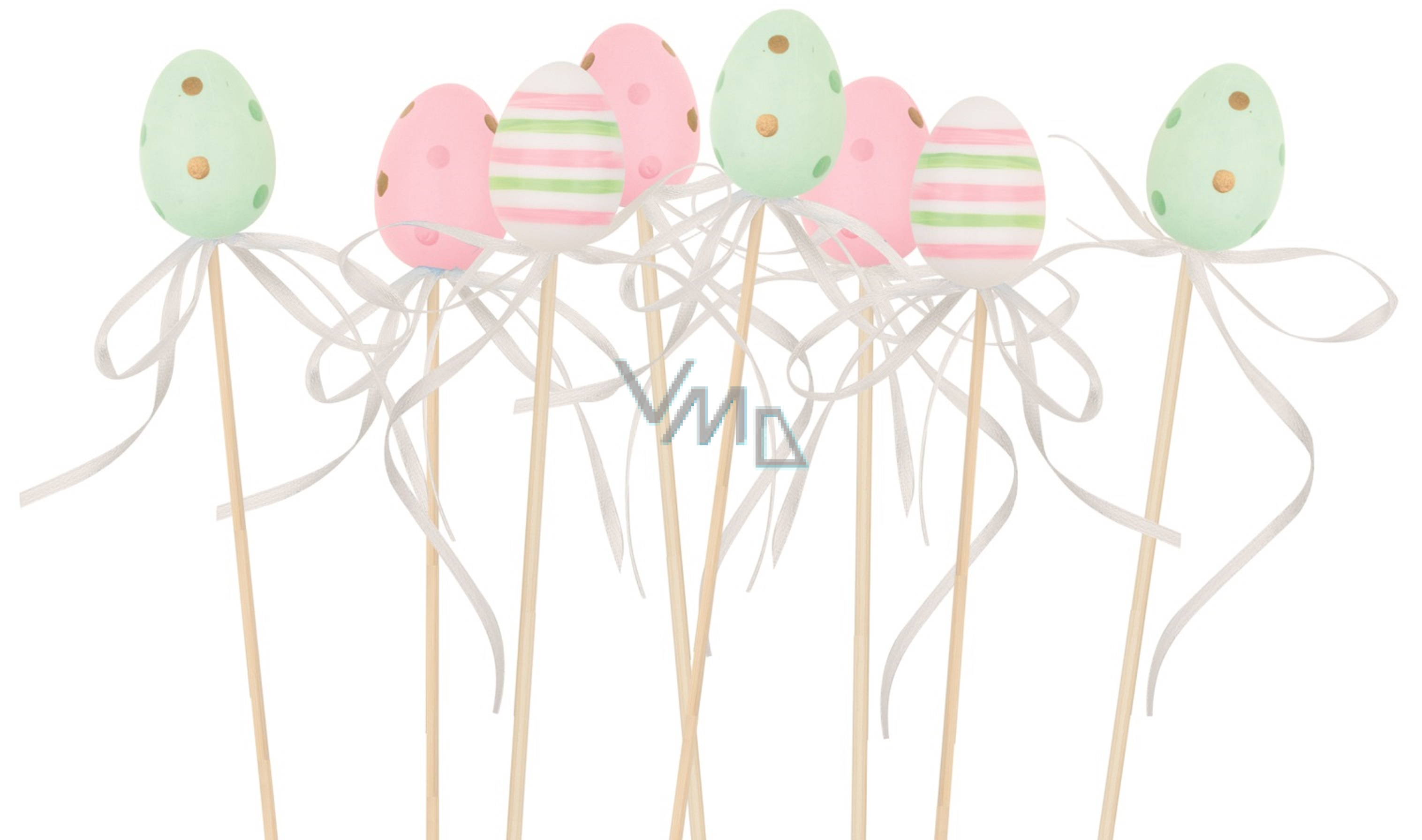 Beschreibung Ei mit Streifen und Tupfen Kunststoffstecker 4 cm + Spieße, verschiedene Motive