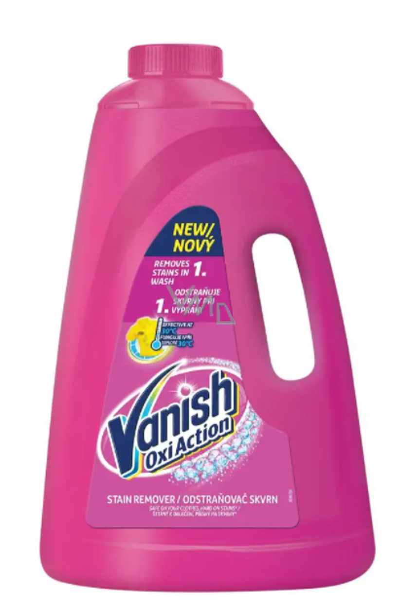 Univerzální tekutý odstraňovač skvrn VANISH Oxi Action pro bílé a barevné prádlo dokáže odstranit skvrny již při prvním praní, funguje i při teplotě vody 30 °C. Díky svému jedinečnému složení vytváří molekuly aktivního kyslíku, které proniknou a čistí až do hloubky vláken. Přípravek je ale zároveň k textiliím maximálně šetrný. Neobsahuje bělící látky na bázi chloru, a přesto odstraní různé druhy čerstvých i zaschlých odolných skvrn. Odstraňovač skvrn VANISH Oxi Action je skvělým pomocníkem pro bezchybný vzhled vašeho bílého i barevného prádla.