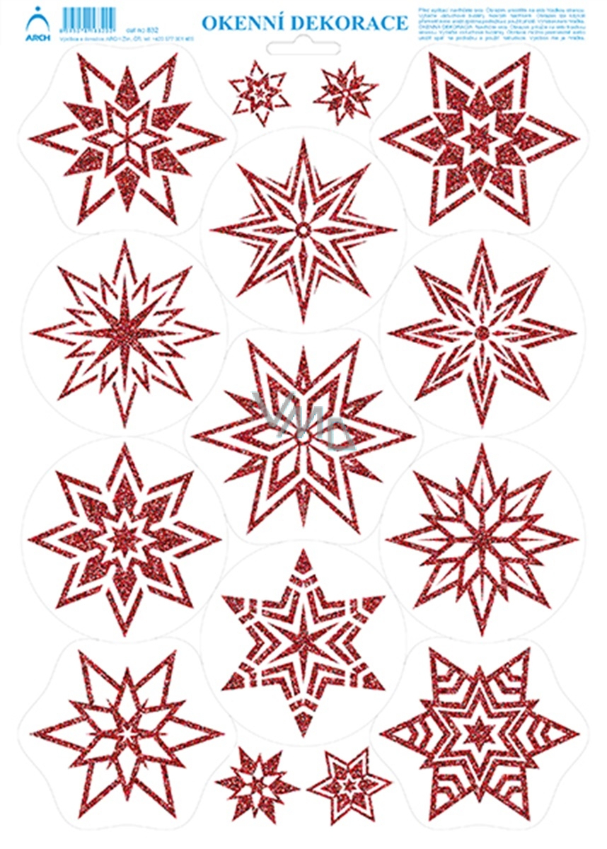 Bogen Weihnachtsaufkleber, Fensterfolie ohne Kleber Sterne rot mit Glitzer 35 x 25 cm