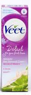 Veet Debut je určen pro všechny ženy a dívky, které se doposud depilační krém bály vyzkoušet. Obsahuje vitamin E a Aloe Vera.