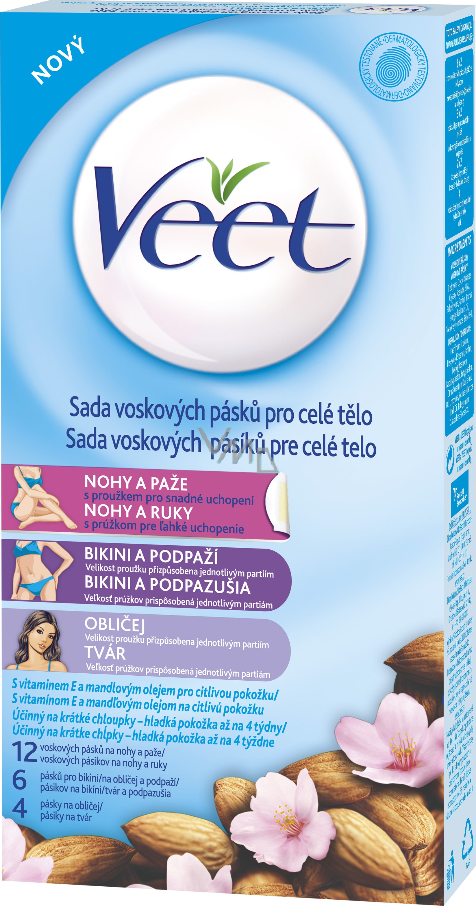 Voskové pásky Veet pro celé tělo s proužkem pro snadné uchopení - s vitaminem E a mandlovým olejem pro citlivou pokožku. Vyzkoušejte nové voskové pásky s proužkem pro snadné uchopení se speciálně vyvinutým proužkem, který vám při depilaci voskem zajistí dosažení perfektních výsledků jedním snadným tahem!