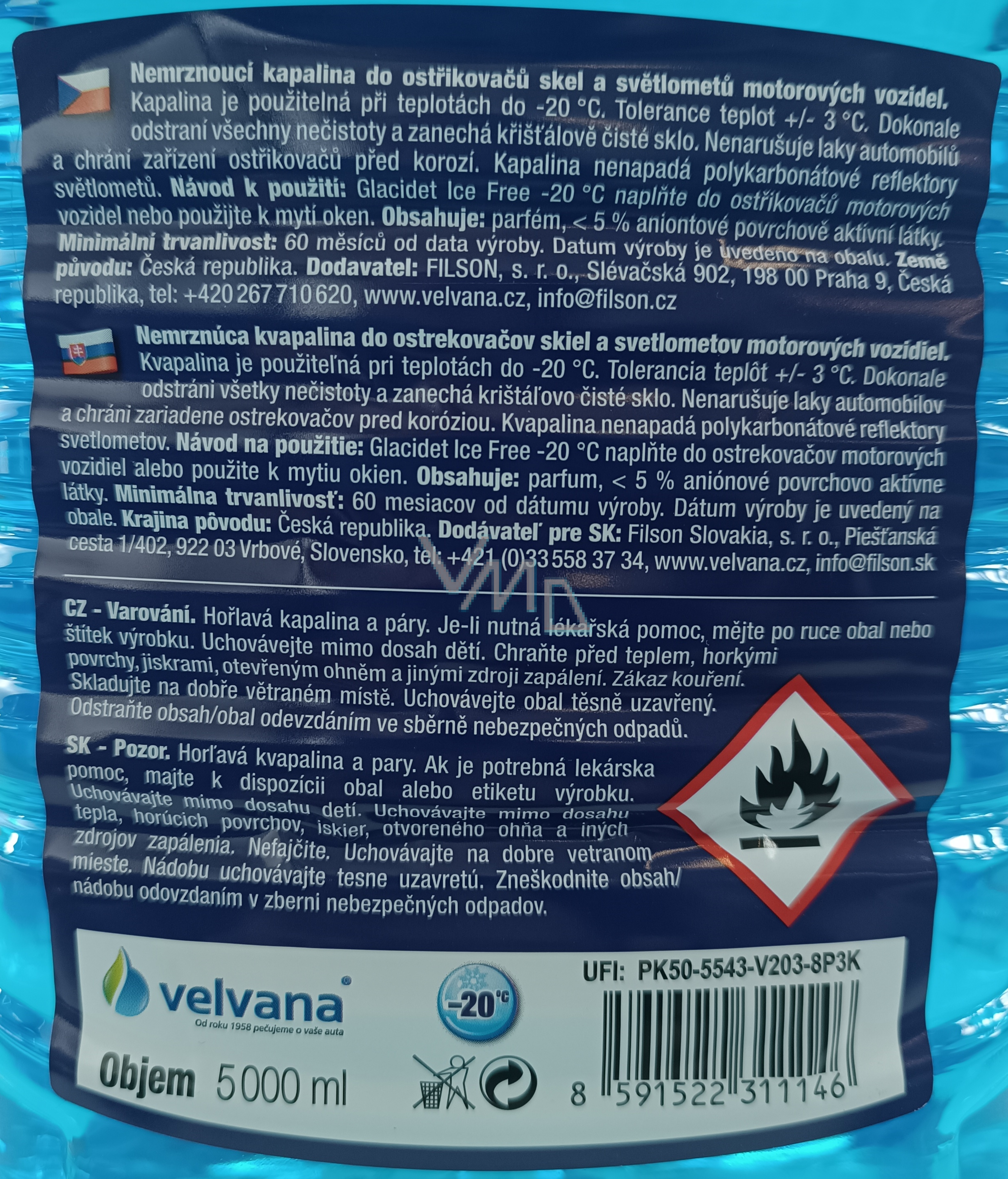 Velvana Glacidet Ice Free - 20°C nemrznoucí směs do ostřikovačů 5 l