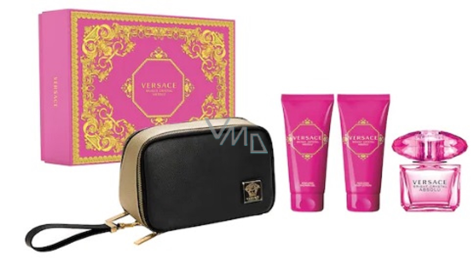 Versace Bright Crystal Absolu Eau de Parfum für Frauen 90 ml + Körperlotion 100 ml + Duschgel 100 ml + Kosmetiktasche, Geschenkset für Frauen