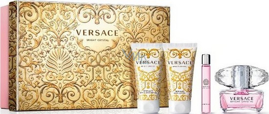 Versace Bright Crystal Eau de Toilette 50 ml + Körperlotion 50 ml + Duschgel 50 ml + Rollerball 10 ml, Geschenkset für Frauen