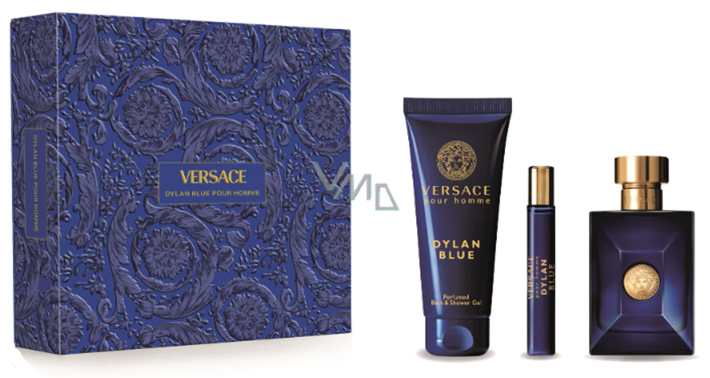 Versace Dylan Blue pour Homme Eau de Toilette 100 ml + Duschgel 150 ml + Eau de Toilette 10 ml, Geschenkset für Männer