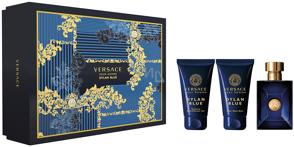 Versace Dylan Blue Eau de Toilette für Männer 50 ml + Duschgel 50 ml + Aftershave 50 ml, Geschenkset