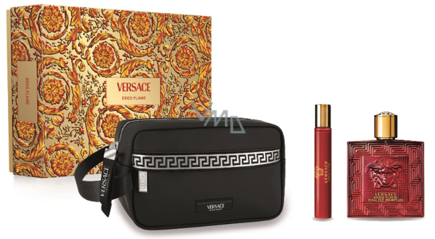 Versace Eros Flame Eau de Parfum 100 ml + Eau de Parfum 10 ml + Kosmetiktasche, Geschenkset für Männer