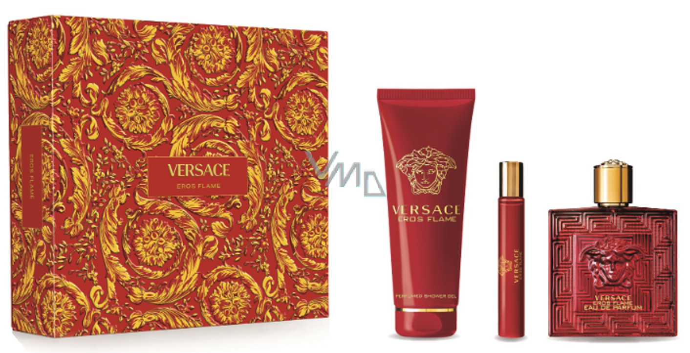 Versace Eros Flame Eau de Parfum 100 ml + Duschgel 150 ml + Eau de Parfum 10 ml, Geschenkset für Männer