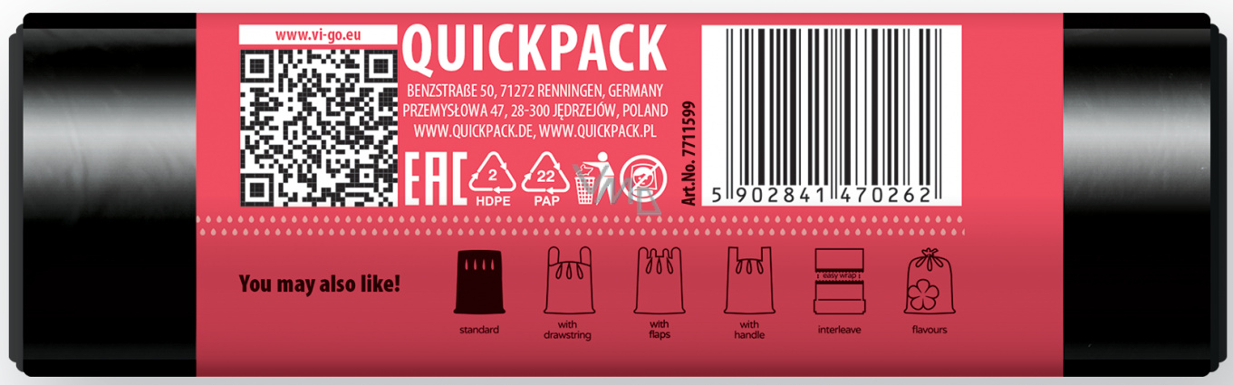 Pytle na odpad viGO jsou kvalitní, pevné a nepropustné, nepropouští vlhkost a zachovávají tak váš domácí nebo kancelářský odpadkový koš v čistotě. Jsou vyrobeny z vysokohustotního polypropylenu, díky kterému nepropouští vlhkost. Tloušťka igelitu cca 7 mikronů zajistí, že odpadky zůstanou uvnitř pytle a nedojde k jeho nechtěnému protrhnutí.