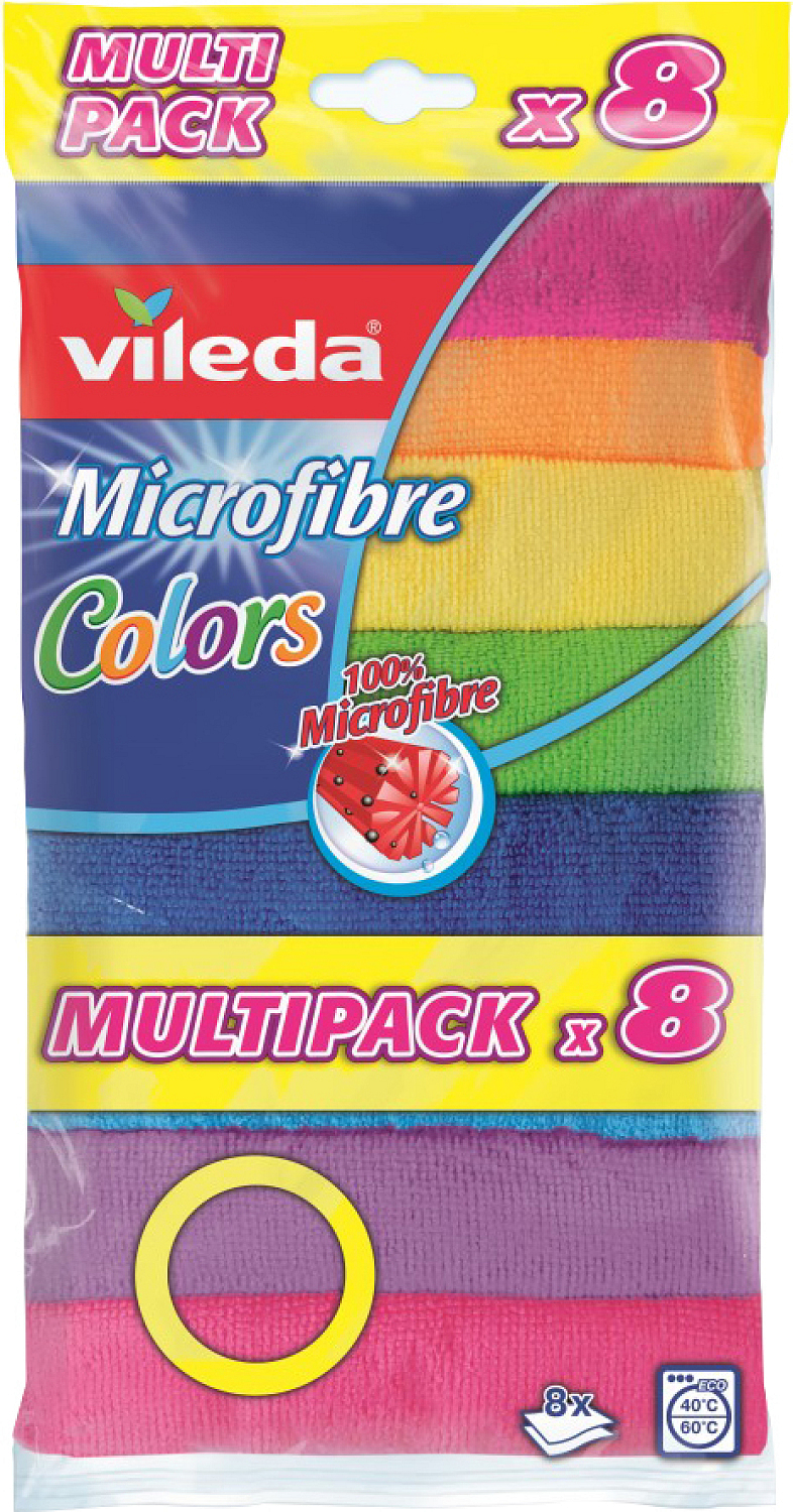 Vileda universelles Mikrofasertuch kann trocken oder feucht verwendet werden. In mehreren Farben erhältlich. Mikrofaser entfernt Bakterien von der Oberfläche nur mit Wasser. Dünne Mikrofasern haften physikalisch perfekt an der Bodenoberfläche, wo sie Schmutz und über 99 % der Bakterien erfassen und ohne den Einsatz von Chemikalien entfernen.