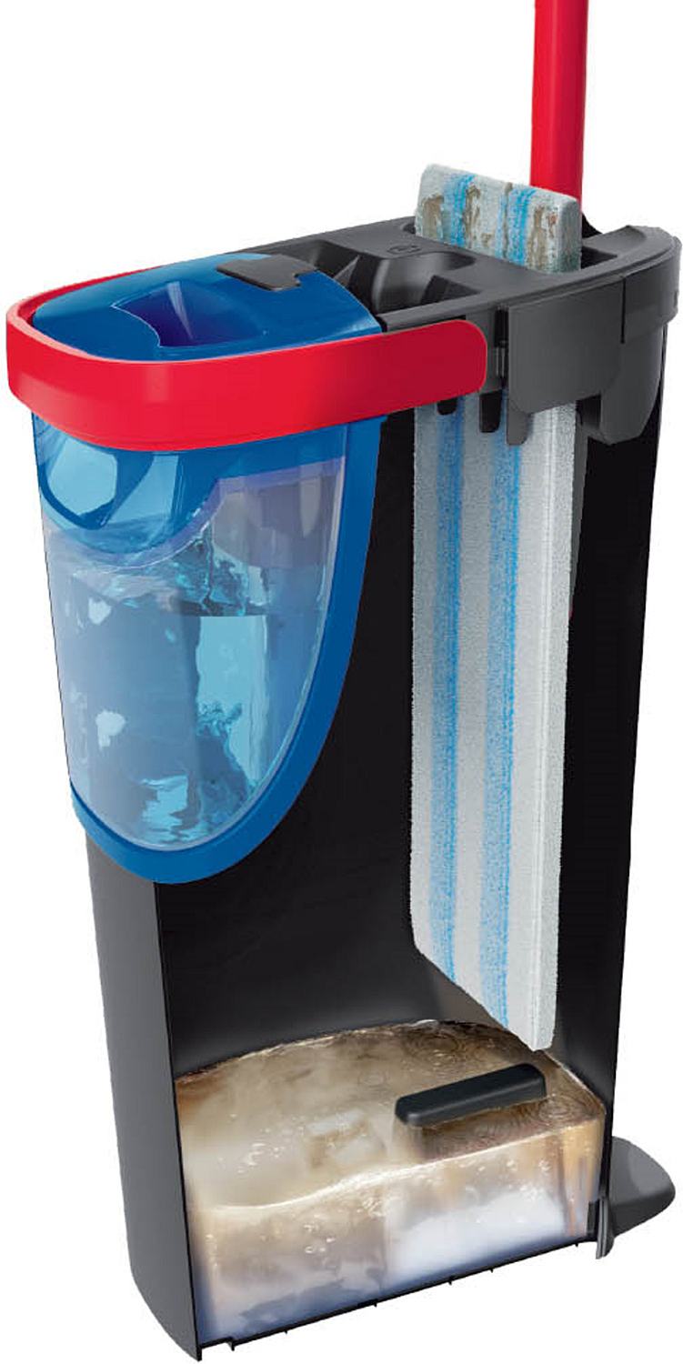 - Saubereres und effizienteres Reinigen – der Mop arbeitet immer mit sauberem Wasser, wodurch das Verteilen von Schmutz vermieden wird.