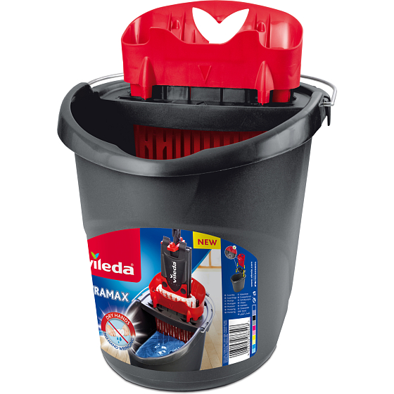 Der Vileda Ultramax Eimer mit Auswringkorb spart Ihnen beim Wringen 30 % mehr Energie. Technologie Power Press. Volumen des Eimers 10 l. Tauchen Sie Ihre Hände nicht ein. Wringen Sie Tücher schnell und mühelos direkt im Eimer mit der Technologie Power Press.