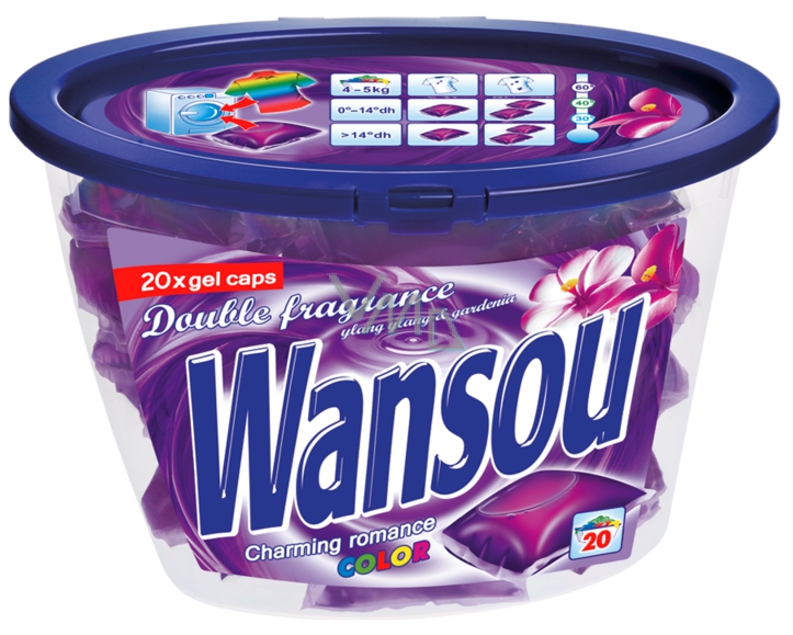 Koncentrované gelové kapsle na barevné prádlo s přídavkem látky na ochranu barev a harmonickou kombinací dvou vzájemně se doplňujících vůní esence ylang ylang a gardénie jsou vhodné pro všechny druhy praček.