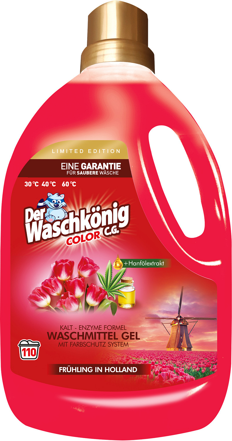 Speziell entwickeltes Waschgel für bunte Wäsche aus der Reihe "Frühling in Holland" bietet perfekte Sauberkeit und Farbpflege.