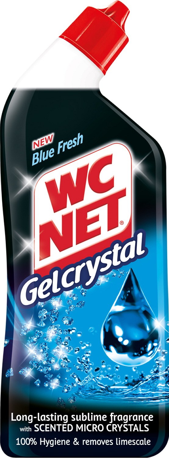 WC NET Gel Crystal Citrus Fresh je Gel mit einem Gehalt an perlenden Mikrokristallen, die hervorragend an der Wand der Toilette haften und eine effektive Reinigung gewährleisten. Dank der neuen Formel und des angenehmen Dufts leuchtet die Toilette und garantiert maximale Hygiene und langanhaltenden Duft.