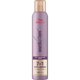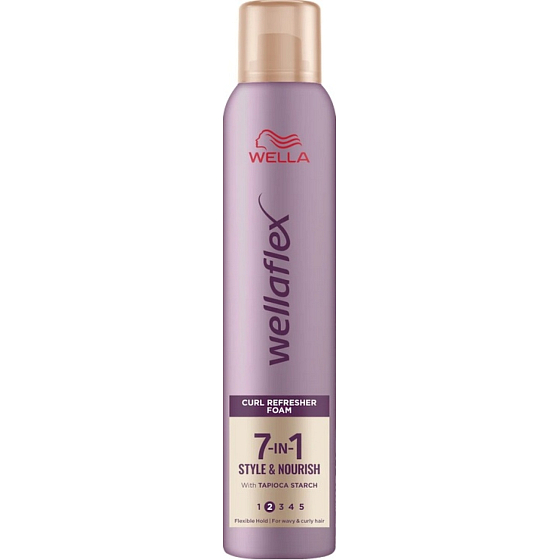 Wellaflex Style & Nourish 7v1 ist ein vielseitiger Schaumfestiger, der sieben Vorteile in einem Produkt bietet – Fixierung, Volumen, Definition, Flexibilität, Hydratation, Glanz und Hitzeschutz. Er hinterlässt das Haar weich im Griff, beschwert es nicht und verklebt es nicht, und erleichtert gleichzeitig das Styling und das Frisieren.