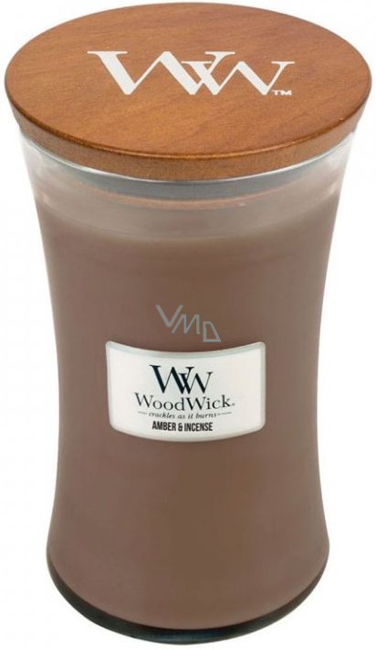 WoodWick Amber & Incense - Duftkerze mit Ambergris und Weihrauch mit Holzdocht und Deckelglas groß 609 g