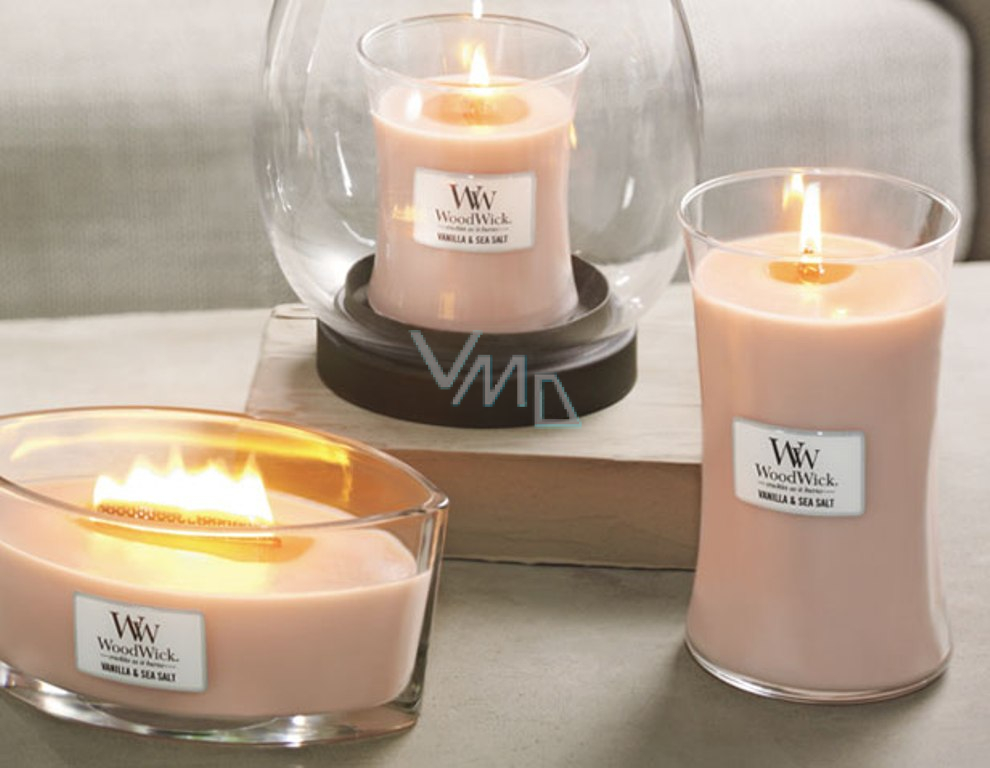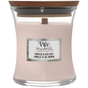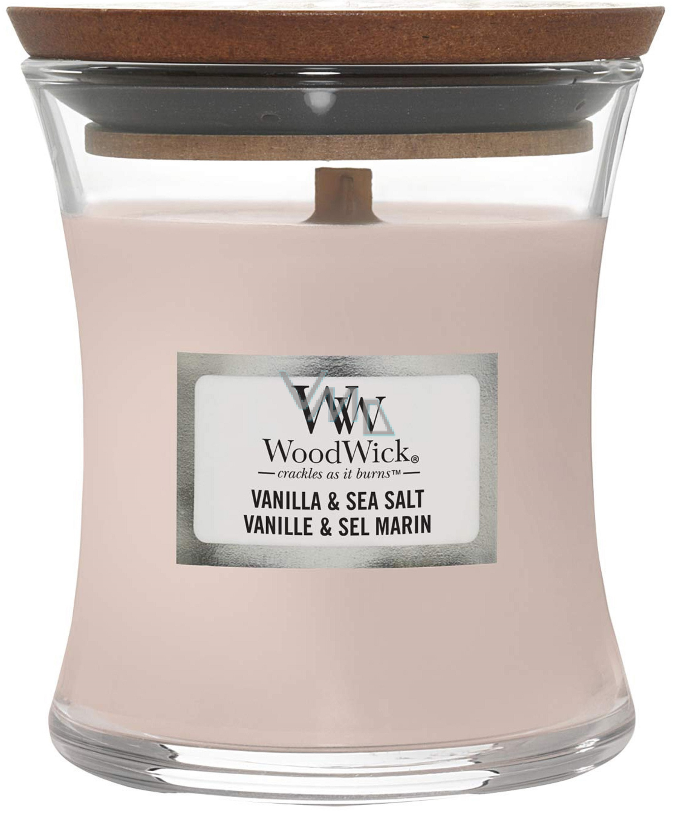 WoodWick Vanille & Meersalz - Duftkerze mit Vanille und Meersalz mit Holzdocht und Deckelglas klein 85 g