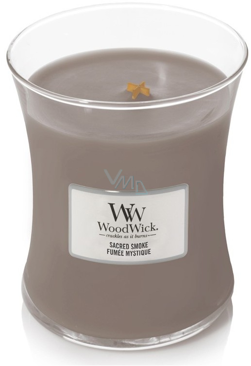 WoodWick Sacred Smoke - Mystische Rauchkerze mit Docht aus Holz und Glasdeckel Medium 275 g