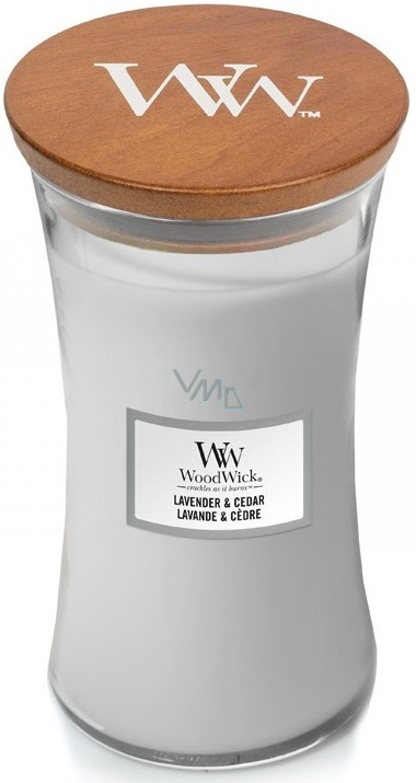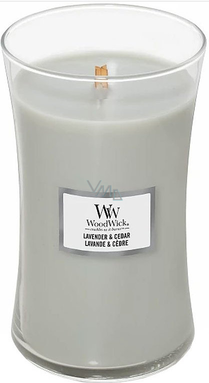 WoodWick Lavender & Cedar - Duftkerze Lavendel und Zeder mit Holzdocht und Deckelglas groß 609 g