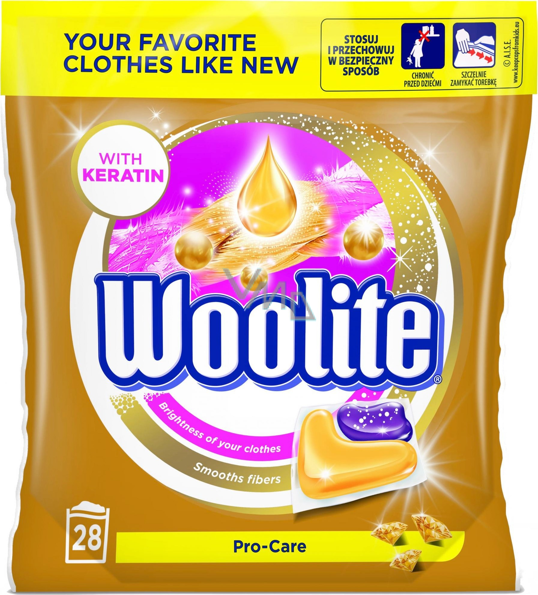 Woolite Pro-Care Keratin-Gelkapseln zum Waschen empfindlicher Wäsche machen die Fasern von 28 Teilen weich und schützen sie
