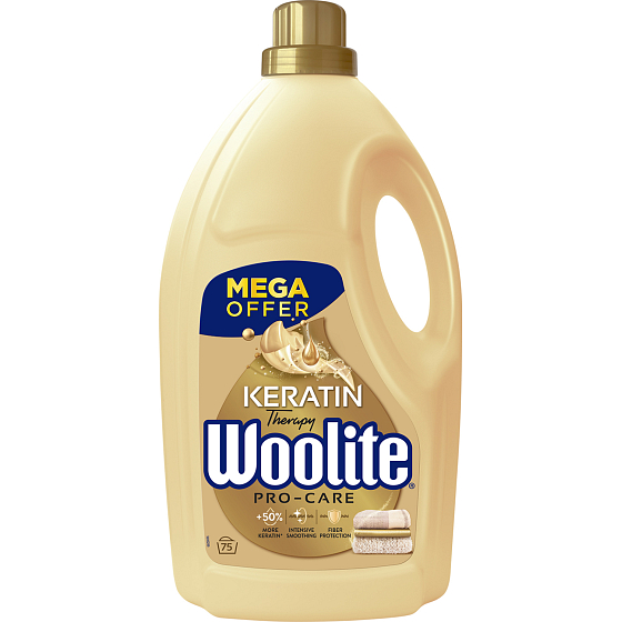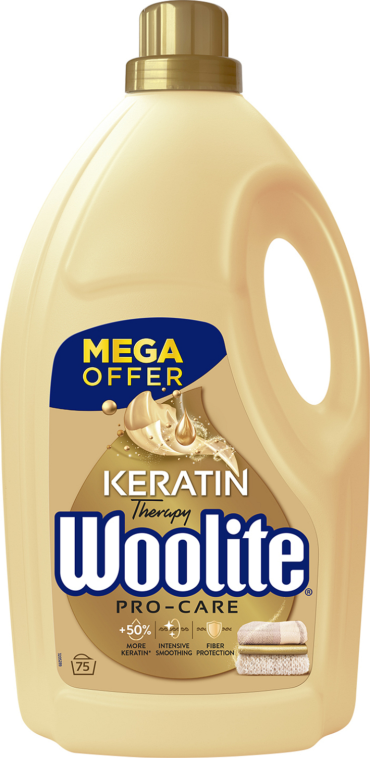 Woolite Keratin Therapy Pro-Care je vysoce účinný tekutý prací gel na všechny druhy prádla prádlo, který nejenom účinně čistí, ale také chrání barvy na oblečení před vyblednutím. Díky obsahu keratinu pomáhá chránit textilní vlákna, dodává jim jemnost, chrání před žmolkováním a látku nemačká.