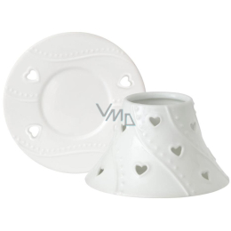 Sada malého talířku a stínítka. Hodí se na vonnou svíčku typu malý housewarmer. Chrání plamínek a zabraňuje plápolání. Plamen hoří zcela rovně, takže ze svíčky získáte maximum vonného výkonu a maximální dobu hoření, parafínová směs taje optimálně rovnoměrně. Svíčka se s tímto stínítkem změní v roztomilou lampičku, efekt je nádherný.