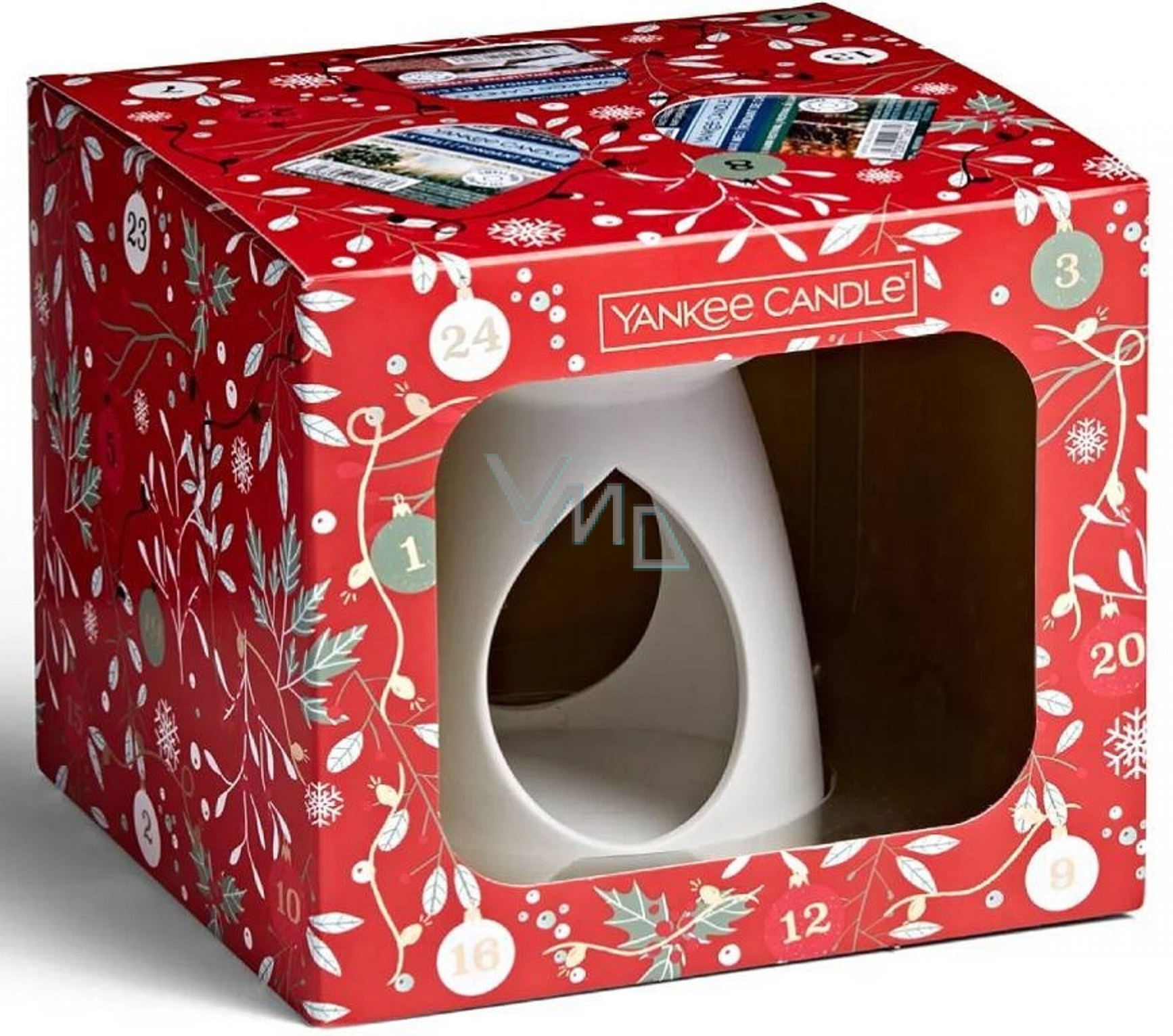 Dokonalý dárek nejen pro fanoušky Yankee Candle. Luxusní krabička zdobena vánočním motivem cesmíny a sněhových vloček vyvedeným zlatou ražbou obsahuje krásnou keramickou aromalampu nadčasového designu, která se hodí do všech typů interiérů, tři vonné vosky s vánočními vůněmi z kolekce Countdown to Christmas a jednu čajovou svíčku. Vrchní část aromalampy je dostatečně široká, takže se vosk nebo vonná esence rozpustí na velké ploše a interiér je rychle a sytě provoněn.