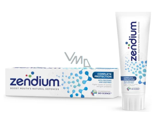 Obsah enzymů a proteinů pro přirozenou rovnováhu slin a udržení zdraví ústní dutiny. Zubní pasta Zendium Complete Protection byla vyvinuta pro celkovou péči o zuby a ústa.