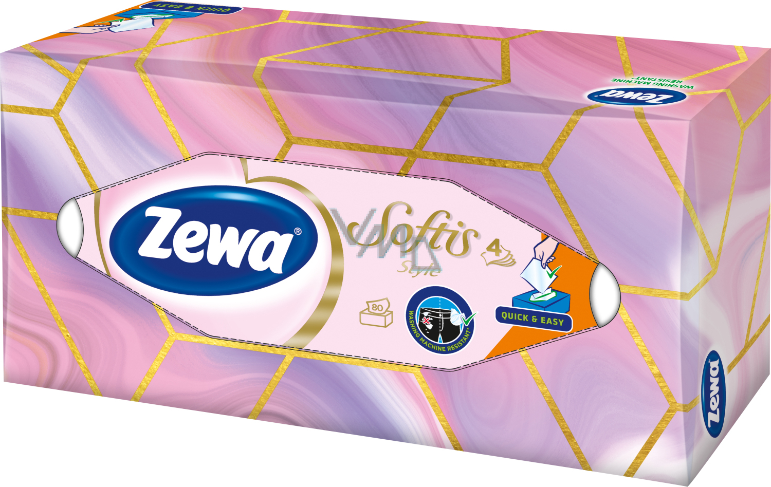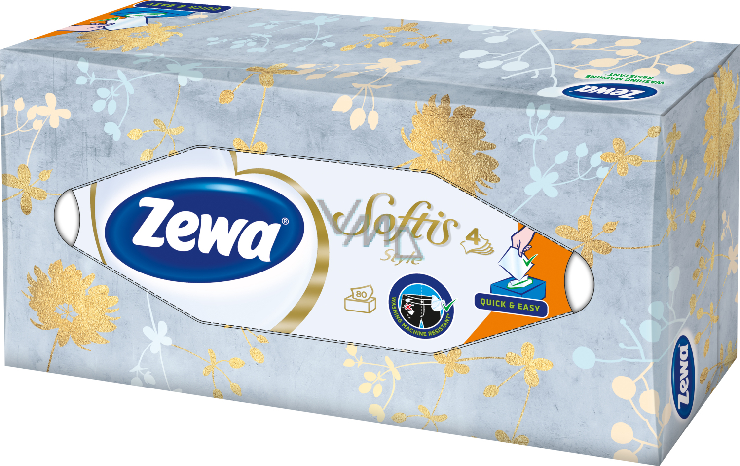Vierlagige Taschentücher, die extra Sanftheit und Festigkeit in einer modernen praktischen Schachtel bieten. Die Zewa Softis Box Design Schachteln sind in verschiedenen Designs erhältlich, die sich von Zeit zu Zeit ändern. Mit dem Zewa-Logo, das unsere bekannte Qualität garantiert.