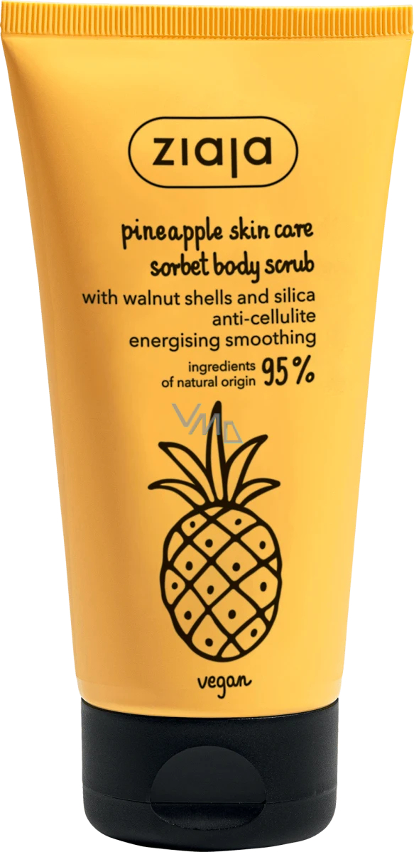 Ananasový peelingující tělový sorbet s drobnými zrníčky, obohacený extraktem z ananasu, kofeinem a jemnou drtí skořápek ořechů s bohatou anticelulitidní recepturou. Extrakt z ananasu (Pinneapple) zlepšuje hladkost, pružnost a pevnost pokožky s celulitidou. Aktivní kofein mobilizuje pokožku pro zlepšení její pevnosti. Posiluje a vyhlazuje strukturu epidermis. Tělový peeling účinně odlupuje a vyhlazuje pokožku, obnovuje dobrý stav pokožky. Pečuje o pokožku a dodává jí kosmetický doping. Dává pocit uvolněné relaxace, povzbuzuje a má svěží exotickou vůni.