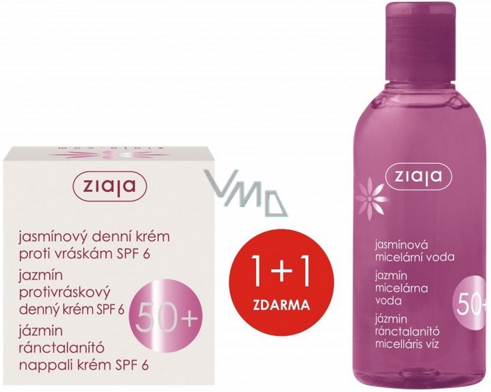 Ziaja Jasmine SPF 6 Tage Anti-Falten-Creme 50 ml + Jasmine 50+ Mizellenwasser 200 ml, Duopack