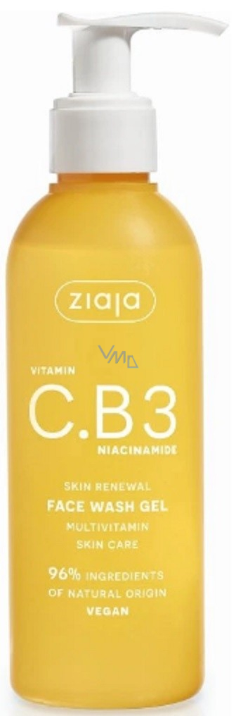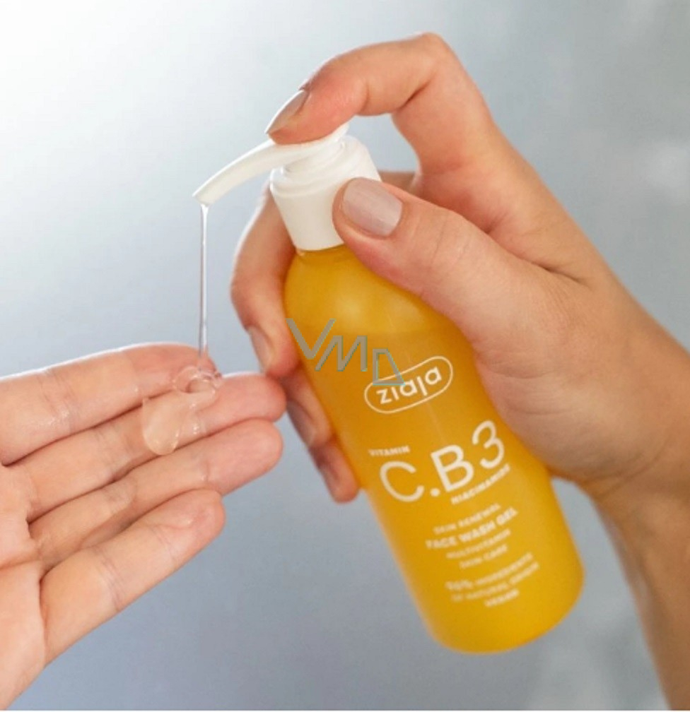 Bezolejový mycí gel Ziaja Vitamin C.B3 Niacinamide pro všechny typy pleti, včetně citlivé a suché pleti. Určeno pro jemné čištění a zvlhčení pokožky. Na bázi jemných mycích složek a aktivitě vitamínů C a B3-niacinamidu.