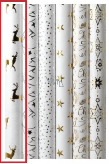 Zöwie Geschenkpapier 70 x 150 cm Weihnachten Luxury White Christmas mit geprägten weißgoldenen Hirschen