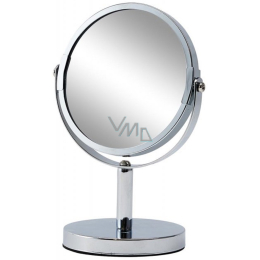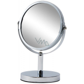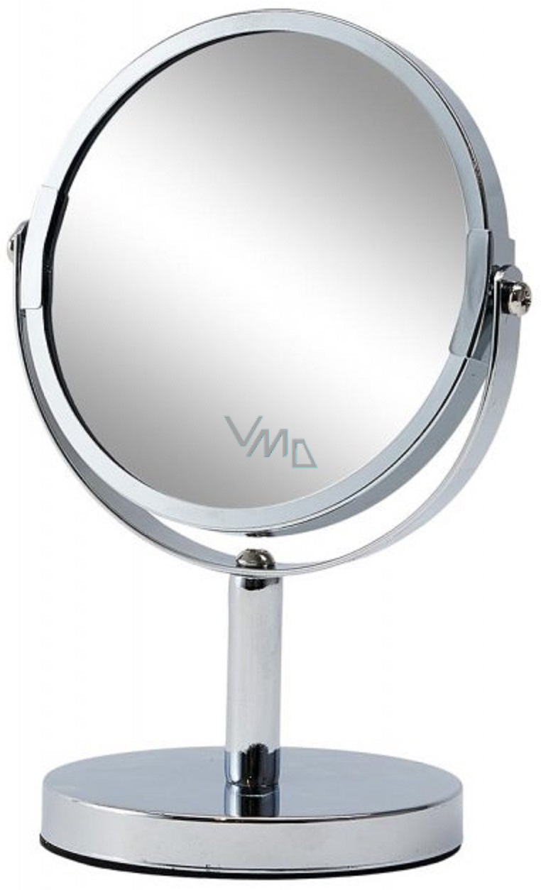 Stolní otočné kosmetické zrcátko ve stříbrné barvě a se zvětšením 1x a 2x. Zvětšovací zrcátko vám usnadní péči o pleť vašeho obličeje, líčení i odličování. Používejte praktického pomocníka, který vám přiblíží každý pór vaší pleti!